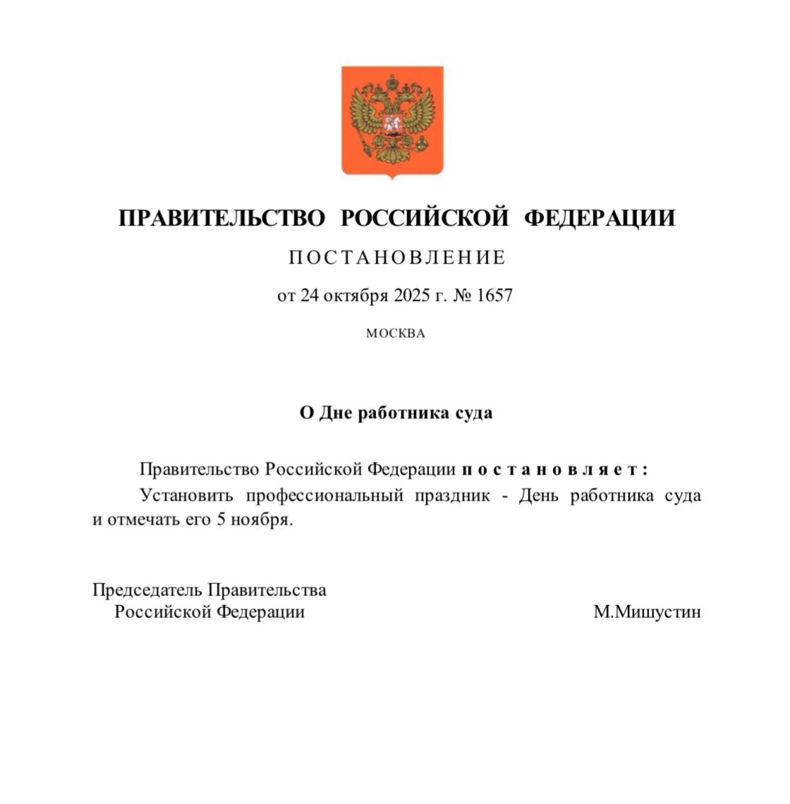 ![]() Новый профессиональный праздник – День работника суда будет ежегодно отмечаться 5 ноября. Праздник установлен постановлением Правительства РФ от 24 октября 2025 года №1657. Празднование приурочено к дате издания указа Императора Всероссийского Петра I «О форме суда». Этот указ увидел свет в 1723 году. Документ установил порядок рассмотрения дел судами и определил, что гражданские дела и большая часть уголовных дел рассматриваются при непосредственном участии обеих сторон. Кроме того, предусматривались положения о действиях суда по вызову истца или ответчика, а также о праве суда применять к сторонам меры принуждения, например, в виде ареста. Инициатива установления праздничной даты была поддержана Президентом, к которому обратился Председатель Верховного Суда Игорь Краснов. |